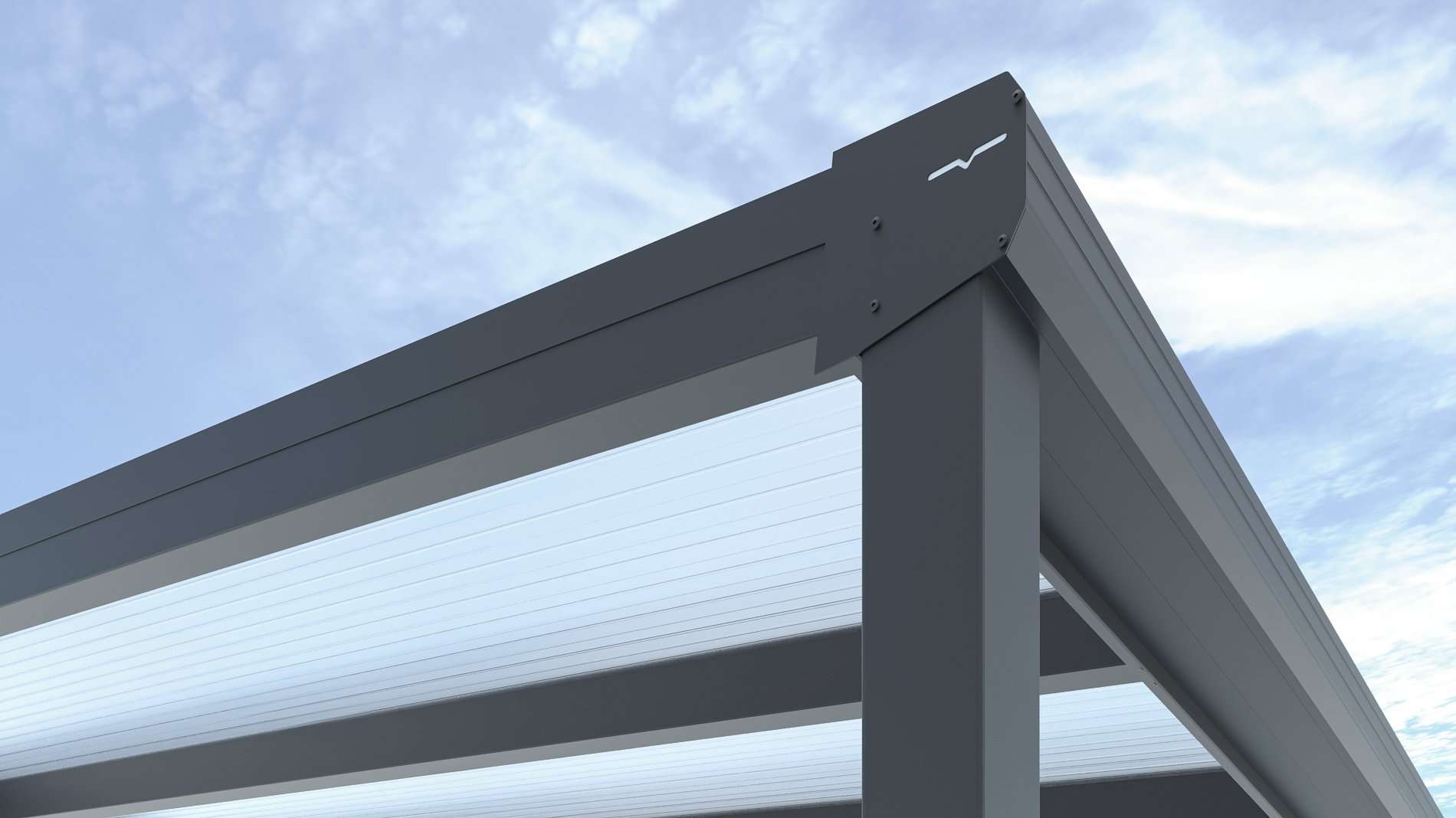 Für die Eindeckung gibt es verschiedene Optionen, je nach Bedarf kann zwischen Verbundsicherheitsglas und Polycarbonat gewählt werden.