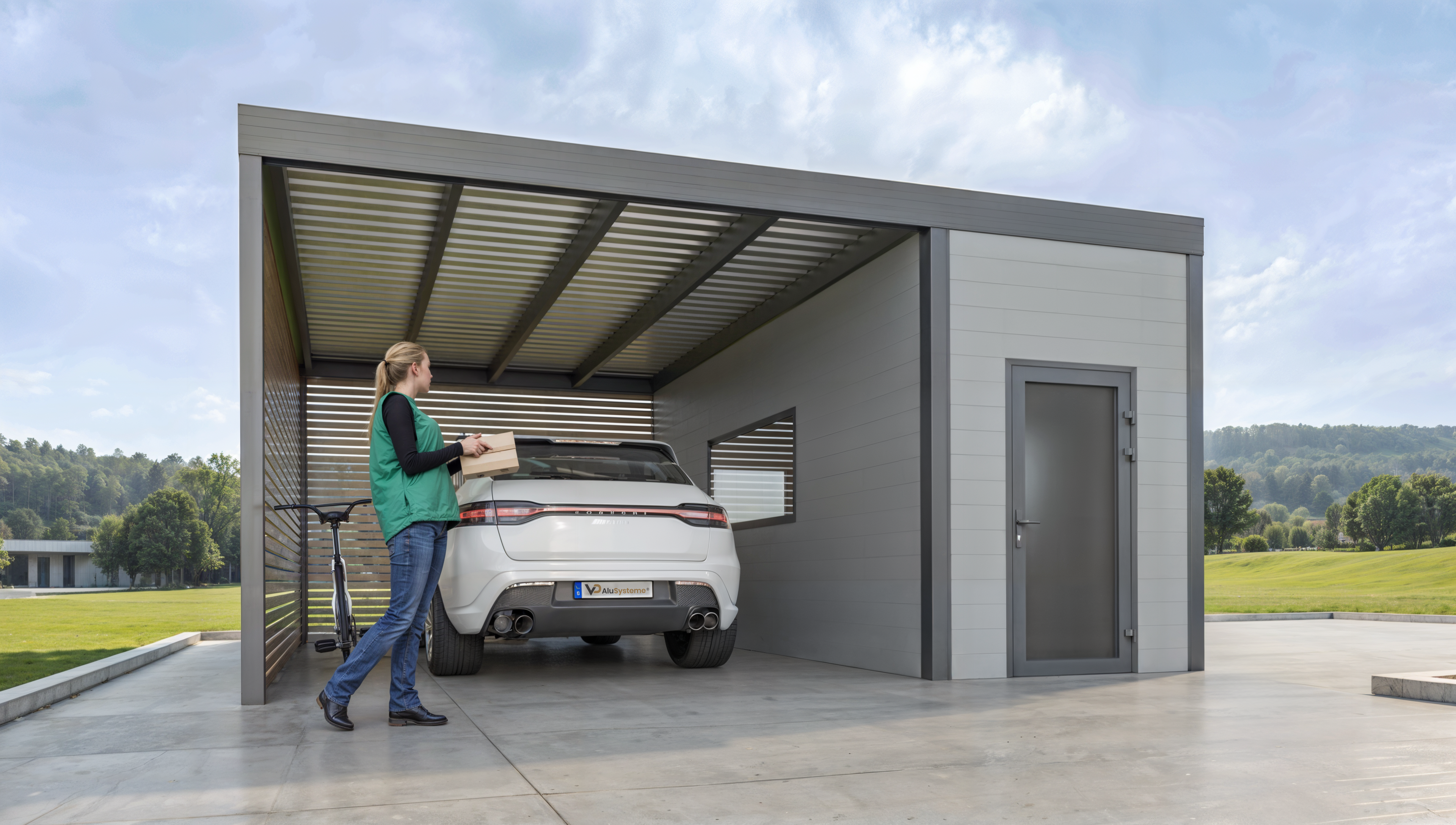 So entsteht ein abgeschlossener Nebenraum, der ideal geeignet ist, um Fahrräder, Gartengeräte oder andere Gegenstände sicher und geschützt unterzustellen. Dies erweitert die Nutzungsmöglichkeiten Ihrer Überdachung um eine praktische und flexible Lösung.