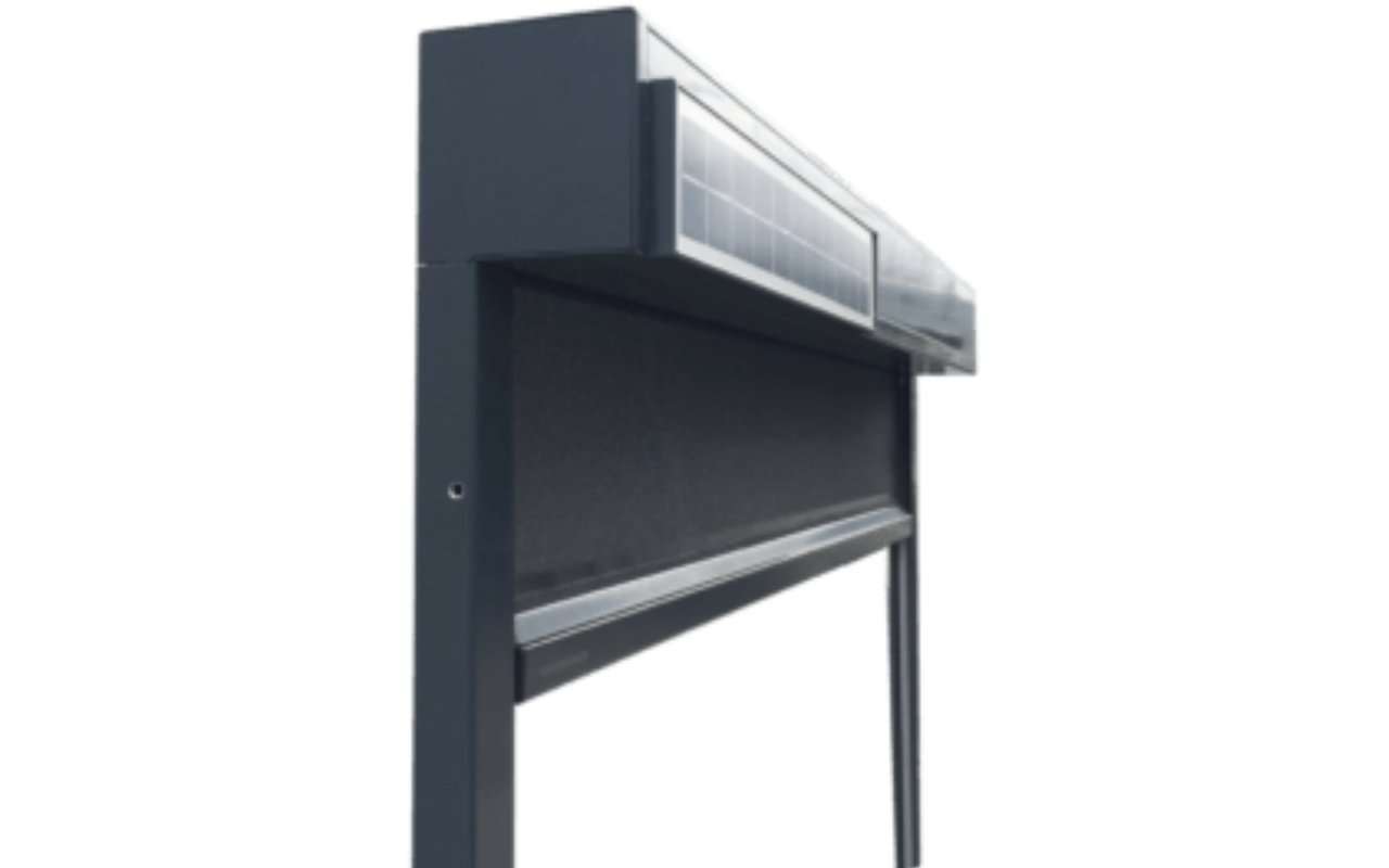 Ein besonderes Highlight bietet die Variante Senkrechtmarkise Solar: