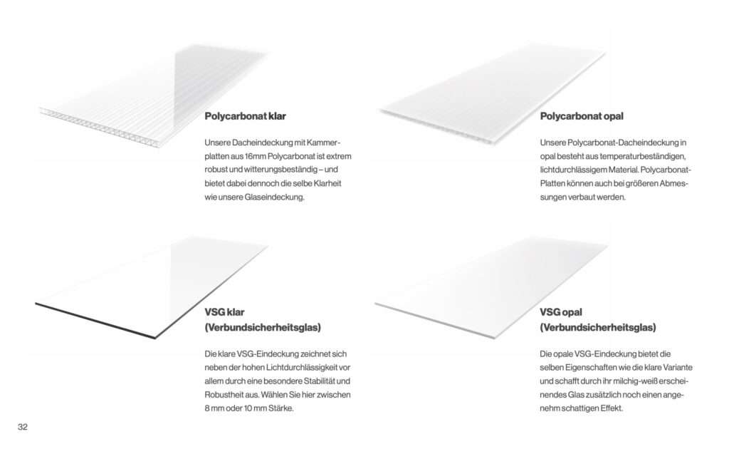 Die Wahl zwischen Alu + Glas oder Polycarbonat hängt von Ihren individuellen Bedürfnissen und Präferenzen ab. Wenn Sie eine elegante und langlebige Terrassenüberdachung wünschen, ist Glas die richtige Wahl. Wenn Sie jedoch eine bruchsichere und pflegeleichte Überdachung suchen, ist Polycarbonat die bessere Option.